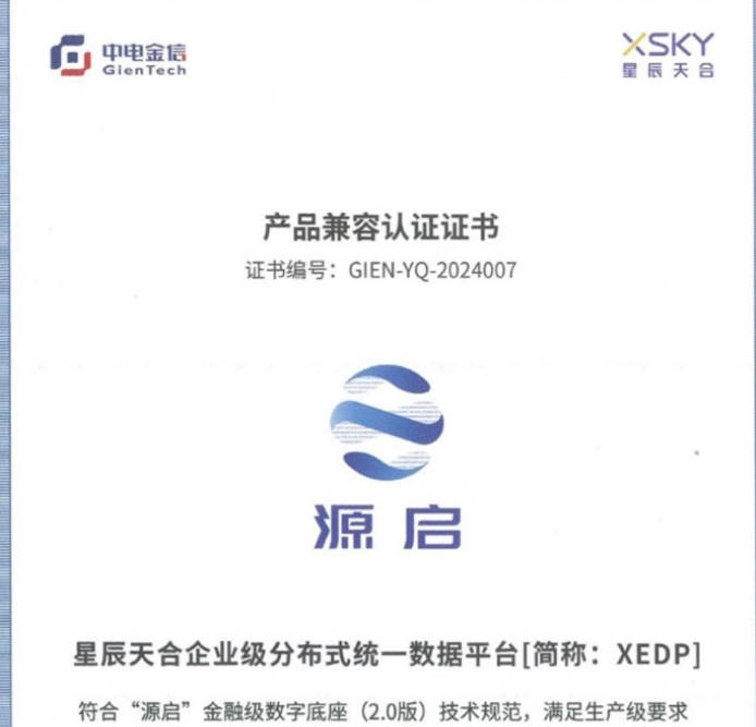 服務于金融新核心系統(tǒng) XSKY星辰天合與中電金信完成產品兼容認證